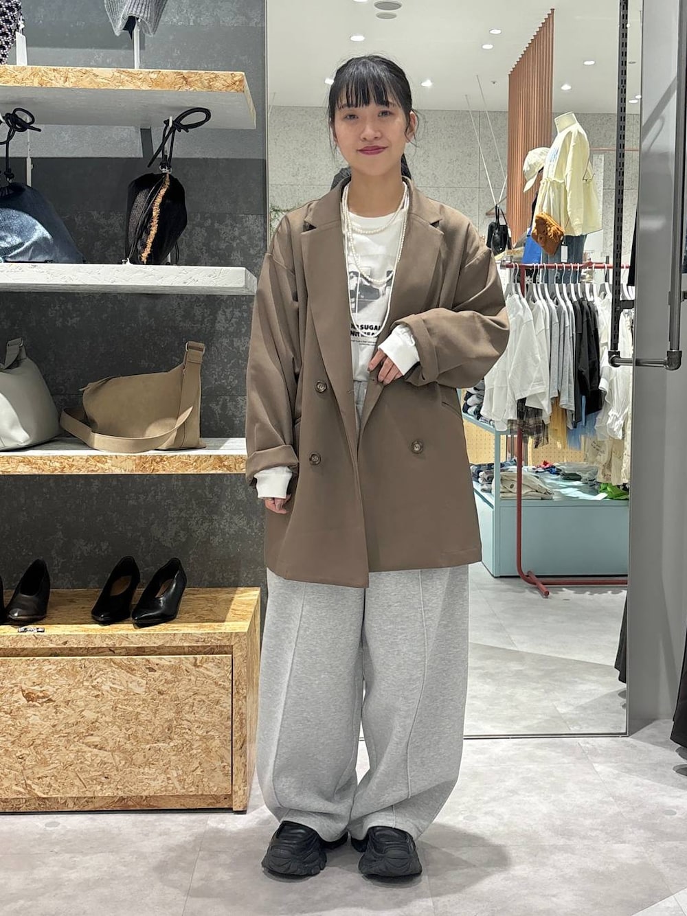 ご覧いただきありがとうございます♡ きれいめカジュアルコーデ ▼Wブレストミドルジャケット サイズ感:ゆったり オーバーサイズのゆったり感が可愛いすぎる♡ モカカラーでかっちり感軽減♪ ロゴアイテムでカジュアルに着れます◎ ▼アソートフォトロンT サイズ感:ゆったり モノクロデザインで合わせやすい🙆♀️ 柔らかい生地なのでごわつかずインナーとして大活躍◎ ▼パフエアバレルスウェットパンツ サイズ:F とにかく軽い🙆♀️ ハリがあるシルエットなので脚のラインを拾わないです! ジャケットと合わせることでカジュアルになりすぎないので大人カジュアルの完成⭐️ ————————————————— Instagramも更新してます♪ チェックしてみてください♡ LEPSIMのアイテムを使ったスタイリングもUPしてます♪