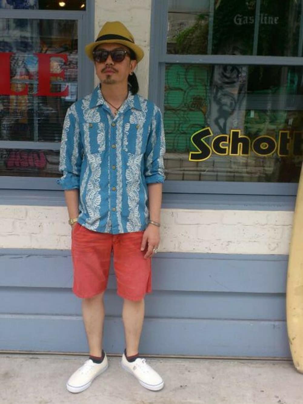 katoのシャツ/ブラウス「Schott(ショット)INDIGO MONSTERA PRINT SHIRT」を使ったコーディネート