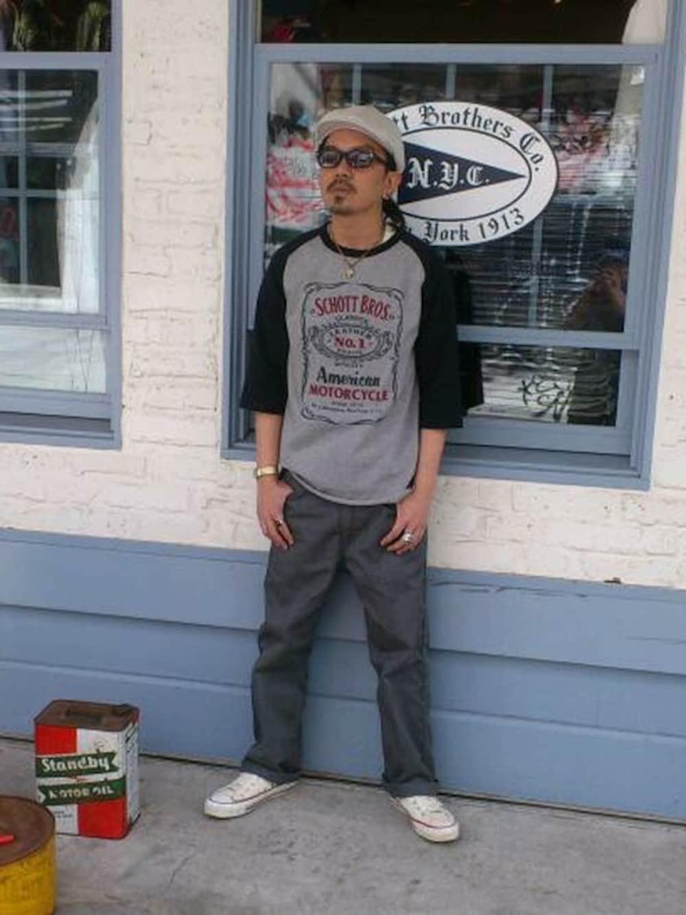 katoのTシャツ/カットソー「Schott(ショット)ベースボールT ウイスキープリント ショップ限定商品」を使ったコーディネート