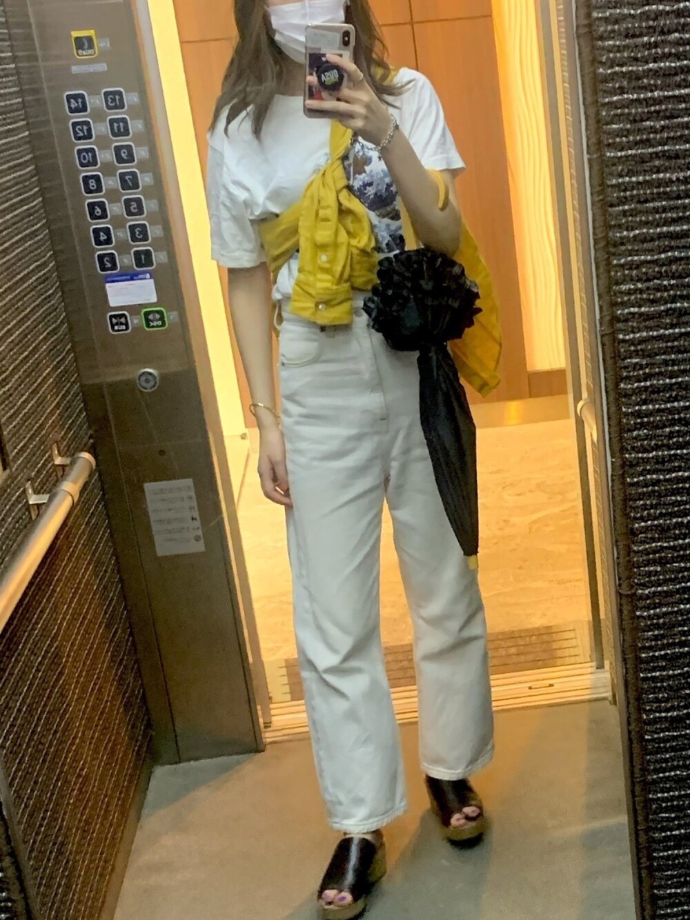 2年前くらいに購入した、超お気に入りのユニクロUT♡ 葛飾北斎コラボのものをメンズのLサイズでダボっと。 綺麗な黄色のシャツをさし色にして、爽やか夏コーデ。