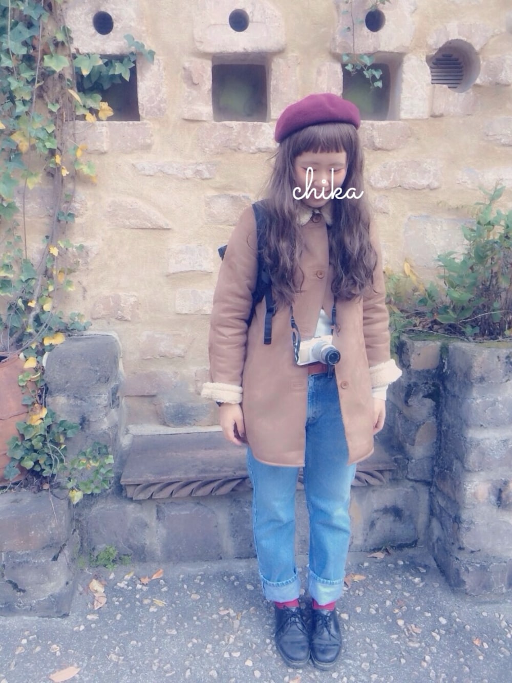 chikaのムートンコートを使ったコーディネート