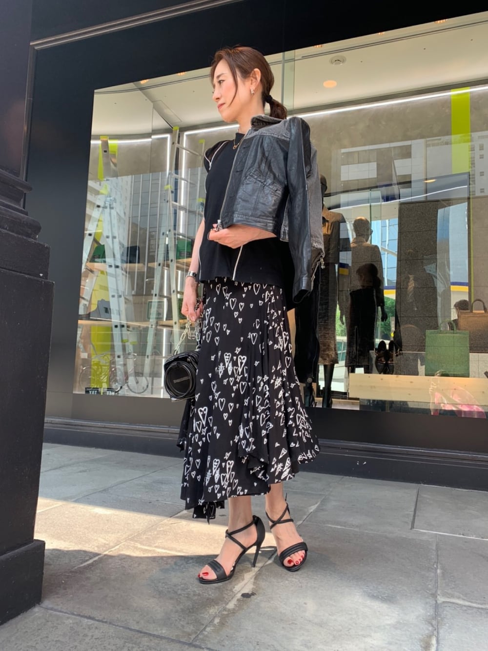 かとちゃん(DIESEL OSAKA)のスカート「レディース スカート ハートプリントアシンメトリーミディアムスカート」を使ったコーディネート