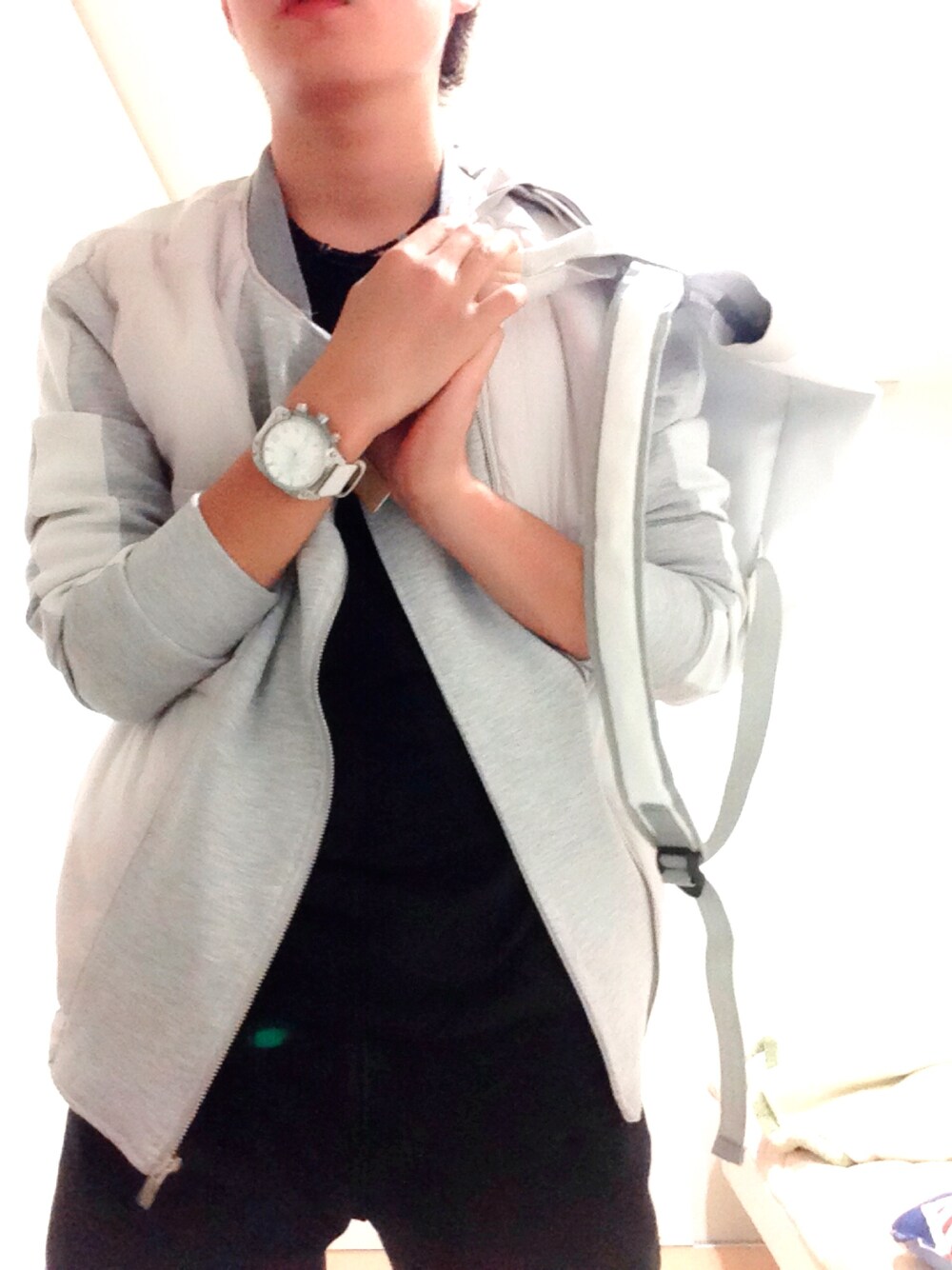 白×黒 スッキリ シンプルコーデ 白と黒でまとめた スッキリスタイル 服だけじゃつまらないから 大きめの腕時計と左耳にピアス そして リュック ちょっとした お出かけオススメ👍 こんなコーデが自分的に好きですw