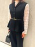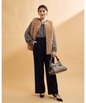 【モノトーンワッフルペプラムジレ】 生地の凹凸感をより引き立てるよう、立体感のある構造に仕上げたツイード素材。 光沢のあるボタンがアクセントとなり、高め位置のペプラム切り替えが目線を高くしスタイルアップに見えます。 通常38サイズですが、36の方がスッキリとし全体のバランスがよかったです。 サイズ感は、36に下げて着用しましたが着用時の違和感はなくちょうど良かったです。 【裏地】あり 【開き・留め仕様】釦前開き 【伸縮性】ややあり 【ケア方法】ドライクリーニング 【モノトーンワッフルワイドマリンパンツ】 太すぎないワイドシルエットが脚をすっきり見せてくれます。 シンプルなカットソーから、起毛したニットなど、様々なアイテムと合わせやすいパンツです。 サイズ感は普段着用しているサイズで大丈夫です。 【開き・留め仕様】ファスナー左開き 【伸縮性】ややあり 【ケア方法】ドライクリーニング 【着用感・生地の厚さ】ふくらみのあるワッフルのようなツィード素材 【フェザーチュールモックネック プルオーバー】 伸縮性があり、羽のような雰囲気の糸を刺繍しエレガントに仕上げたプルオーバー。 羽の様なフェザーチュールの生地がとても華やかな印象になります。 ややシアー感もあるので、1枚での着用はもちろん、ジレのインナー使いにもおすすめです。 ちくちく感は、気にならなかったです。 サイズも普段着用しているサイズで大丈夫です。 【透け感】あり 【開き・留め仕様】なし 【伸縮性】あり 【ケア方法】手洗い可