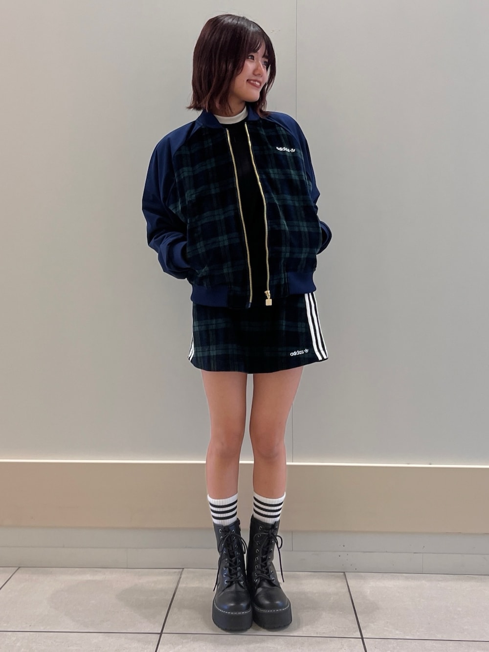 YK(アディダス オリジナルスショップ ららぽーと横浜)のスカート「コーデュロイ タータンスカート / アディダスオリジナルス adidas Originals」を使ったコーディネート
