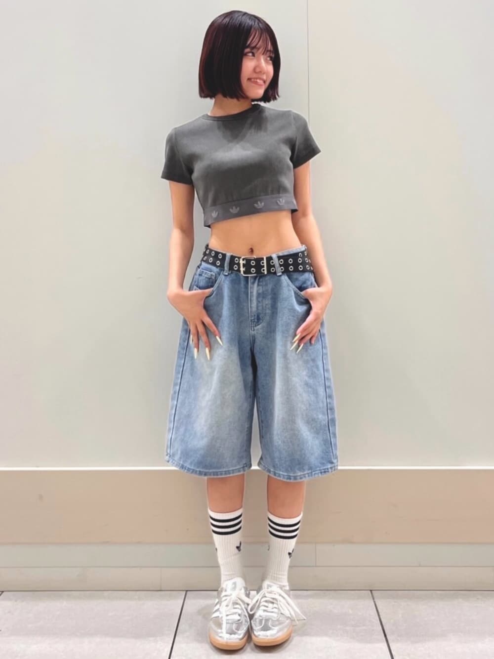 YK(アディダス オリジナルスショップ ららぽーと横浜)のTシャツ/カットソー「リブ半袖トップ / アディダスオリジナルス adidas Originals」を使ったコーディネート