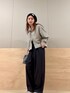 丈短でダブルジップのカーデをストレートパンツと合わせると、全体のバランスがまとまってオシャレ見えします🫶🏻 差し色で赤のネックレスを着けました🍒