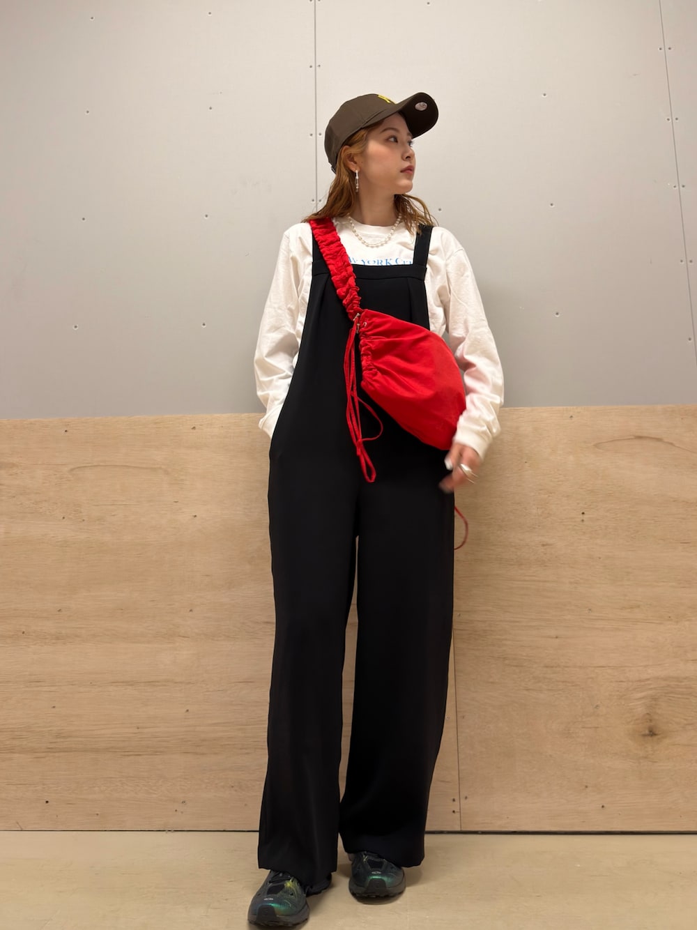 着るだけでコーディネートが完成するサロペット!doorsのジョーゼットタックサロペットはベーシックな形で合わせやすいです!