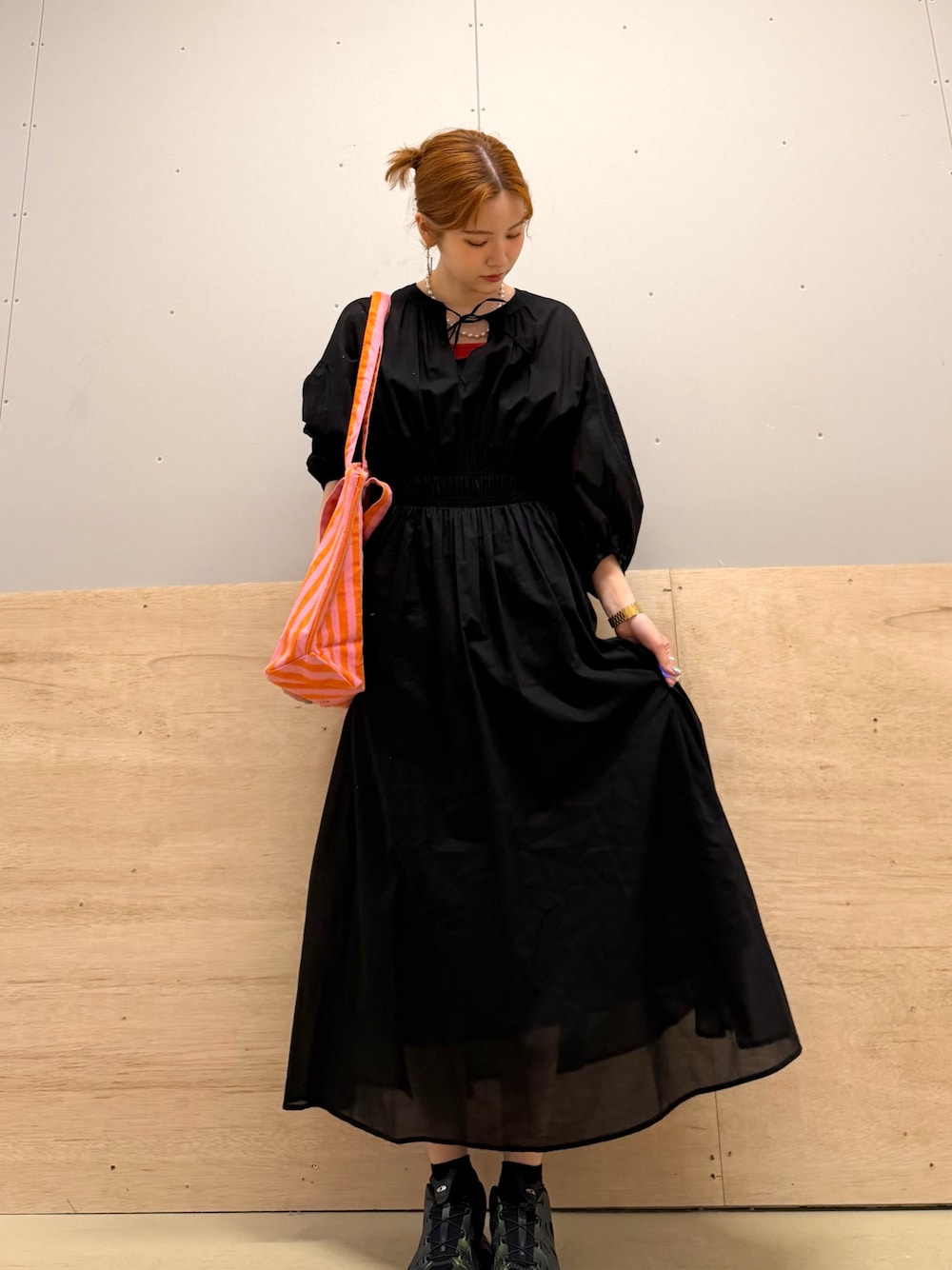 ハイウエストのシャーリングデザインのお陰でスタイルアップが叶います🫶🏻