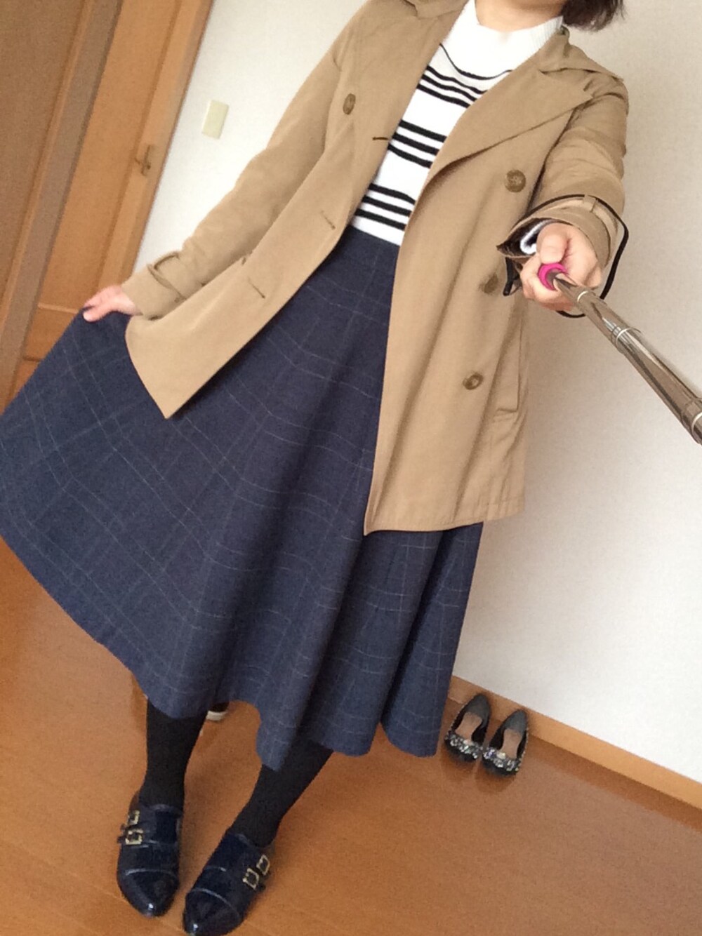 トレンチ:ハニーズ ニット:GORGE スカート着回しです( ´ ▽ ` )ノ いつもより大人な感じを出してみました😋