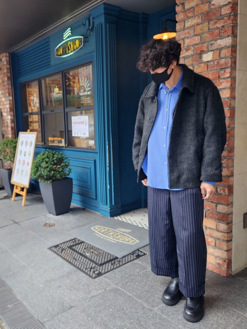 カフェコーデⅫ ブルーコーデ好き😊 epnokのパンツに合わせるベストもあるから春にはええね✌️
