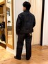 ジャケット 短丈で身幅アーム広めです。 リジッドは最初かなり硬く本体のシルエットが出やすいです。 パンツ ややテーパードがかかっていて着るとバルーンシルエットの様になります。 ウエストは狭めな仕様になっていてよりシルエットが出やすいです。 フルレングスくらいで着たい方は上のサイズをお勧めします。 是非真似してみて下さい👍