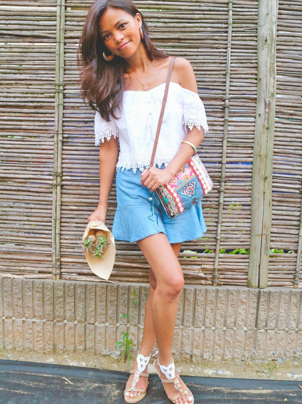 エスニックテイスト満載のショルダーバッグ。デニム生地がベースでビーズに刺繍、貝殻も入っていてクラフト感たっぷりの夏らしいアイテムなので、この夏は大活躍しそうな予感❤︎