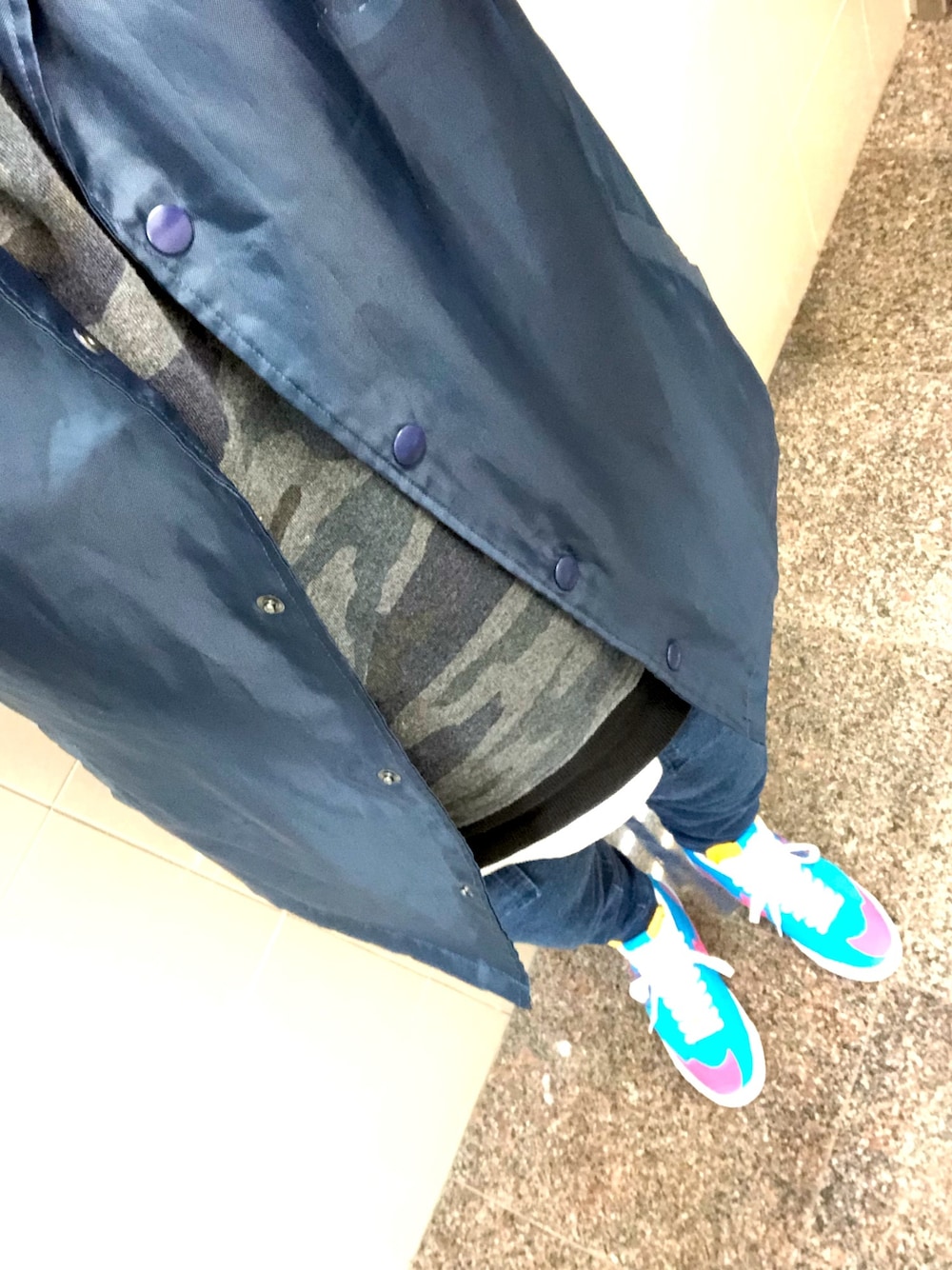 休日コーデ☺️ 古着コーチJ Kに迷彩スエット デニム風パンツにナイキのブレザー😃