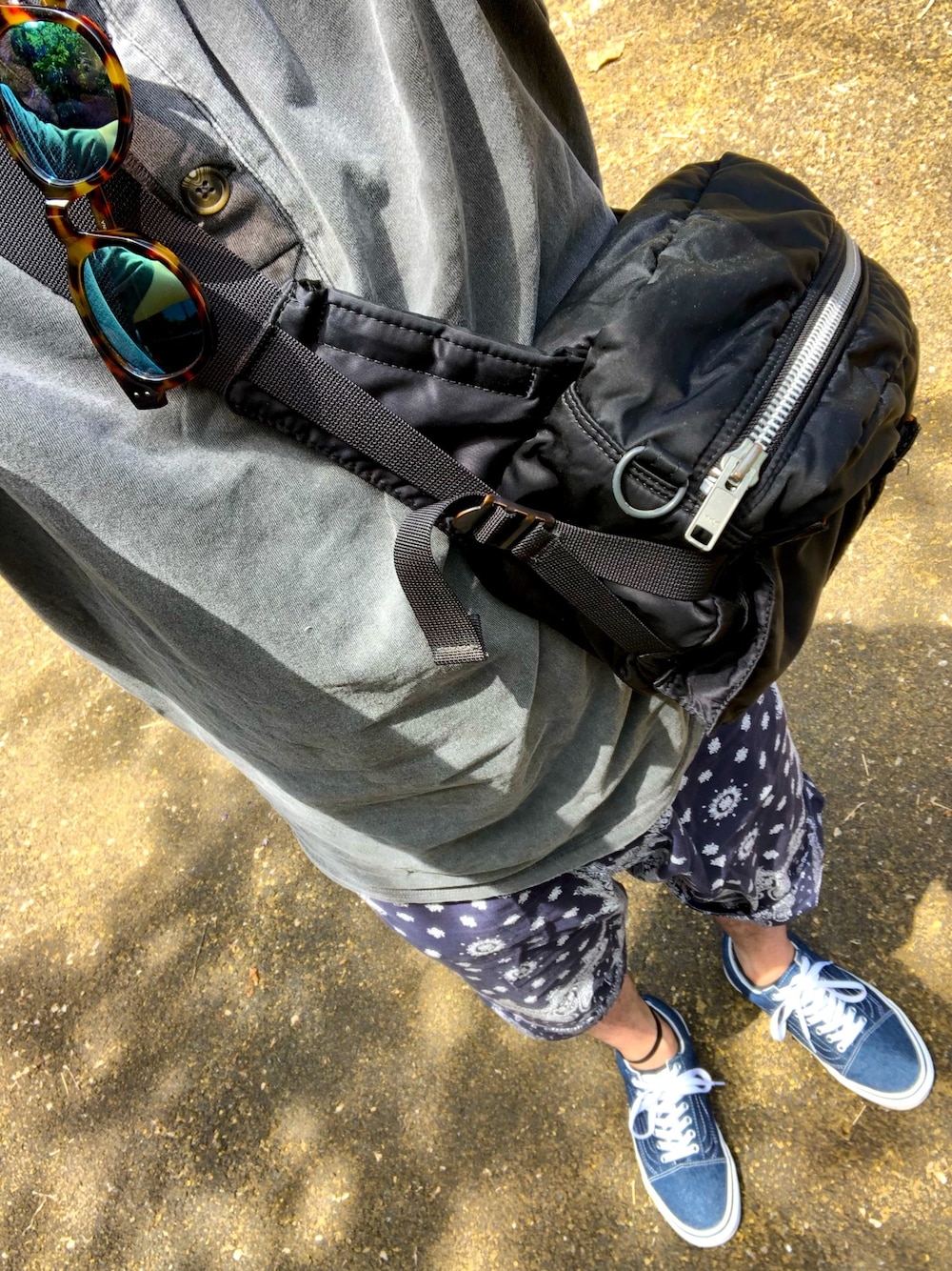釣りコーデ😃 古着のTシャツにペーズリー柄のパンツ バンズのデニムのオールドスクール☺️