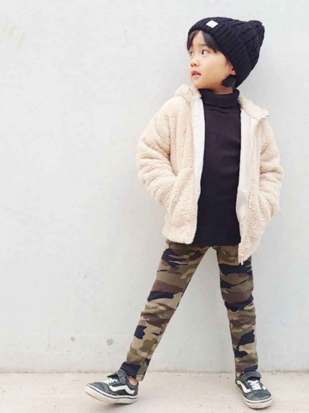 レギンスパンツ、多分女の子用だと思うけどカモフラ柄だから男の子もカッコいい✨ 裏起毛で厚手なので幼稚園にも大活躍です。