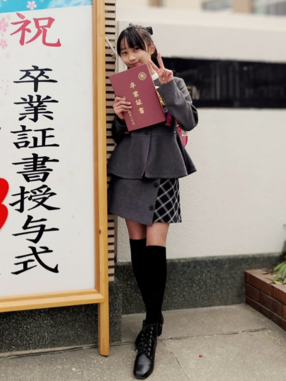 お洋服はシックなグレーだけど ペプラムの形が可愛いセットアップにしました 靴は悩んだけど… お友達はスニーカーやローファーなど色々なようで katyはブーツに 皆の卒服も個性があって可愛かったなぁ。
