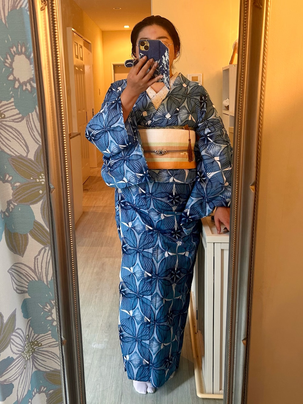 暑くなりました。今週は夏、週末は春に戻るみたいです。 知多木綿の浴衣を着物風に。大きめの柄にびびっていましたが、24年冬に個性的で素敵なヴィンテージたちを着て度胸がついたのか、今年はあら良いじゃない、と。持ってて良かった😊
