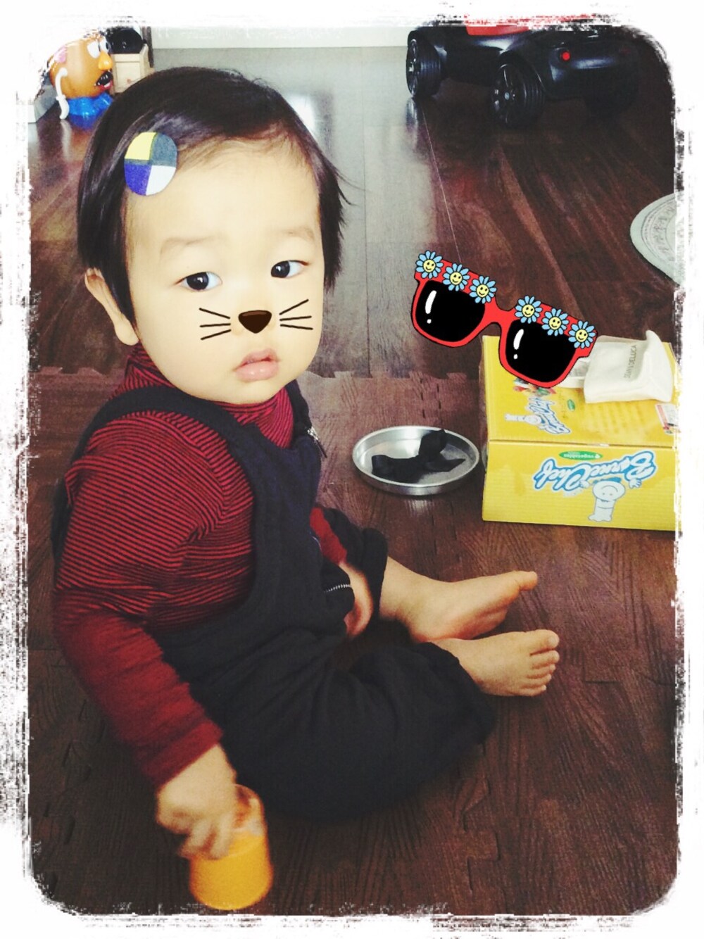 息子ですが…(笑) 0歳の時にノリで買ったパッチんピンを最近たまたまお家で付けてみてたので。