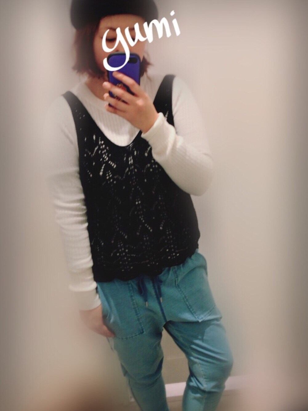 初投稿^^* GUのキャミレイヤードセーターとスウェットイージーパンツを合わせてみました。