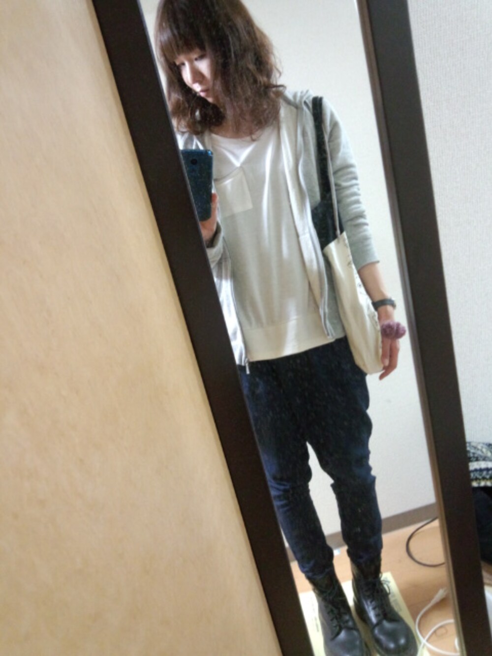 この前のお散歩コーデ* 大分暖かくなりましたね(´ー`) トップス*ジーナシス パーカー*UNIQLO パンツ*KBF 靴*ドクターマーチン