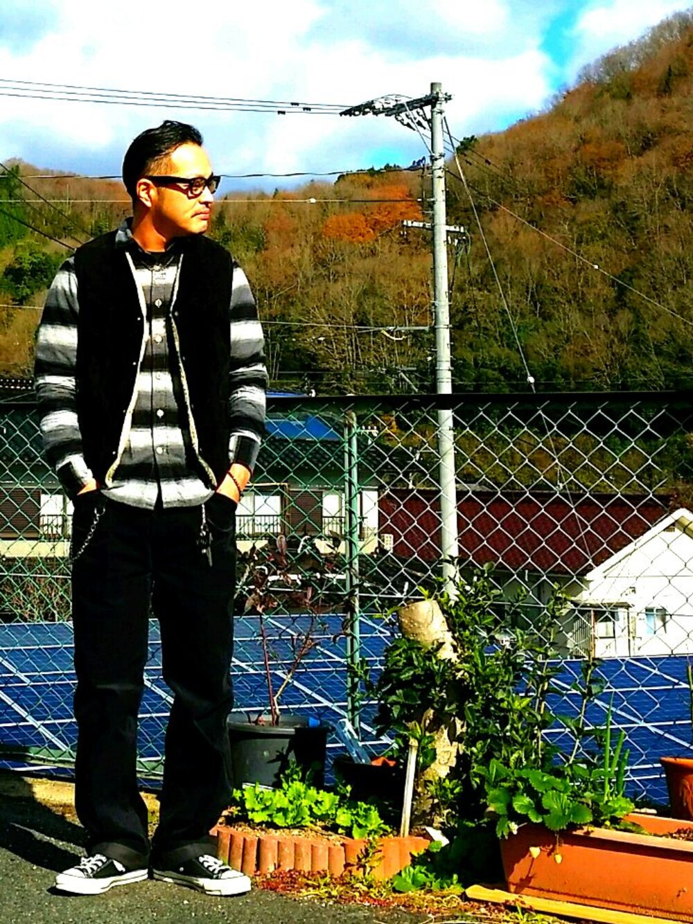 モノトーンコーデ🐼スウェードボアベスト暖かいです🌕😊👍✨
