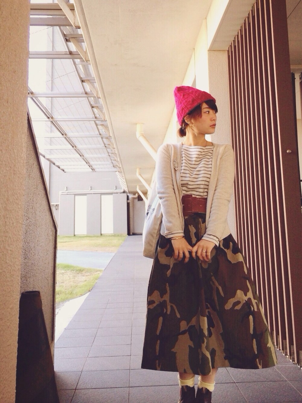∞Today's style∞ 日曜日は都内をぶらぶら休日のスタイルでした。BEAVERで買った迷彩のスカートは存在感抜群。 迷彩×ボーダー 意外にありだと気づきました◯