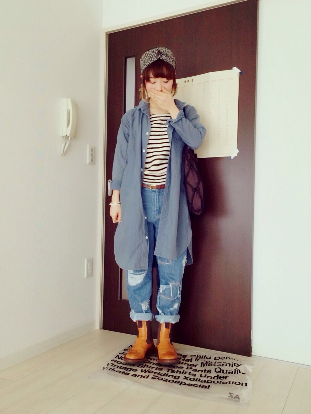 いろんな人のコーデから口を隠す、という手法を参考に。笑 手までも太っておる…! Hair band: handmade Shirt: good thing Pants: Plumpynuts Shoes: Tricker's Bag: YCAM