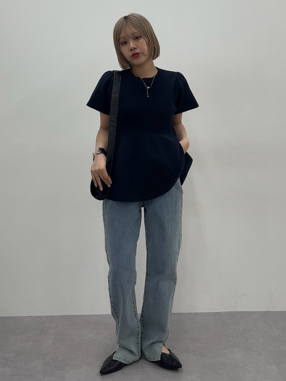 ペプラムニットとデニムを合わせたコーデ🫶🏻 ウエスト切替になっているのでとってもスタイルアップして見えます🫧 デニムはウエストが調整できるボタンがついているので、合わせる物でサイズ感を変えれる所がポイントです🌸
