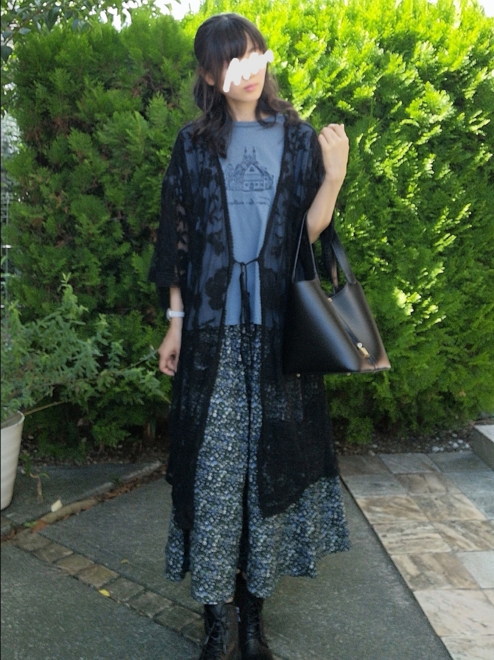 ガーリーなスカートコーデに黒レースを羽織ってみました。 ほっこりしたコーデに小物でちょっとドレッシーな感じをプラスできてお気に入り❁⃘*.゚ 数年前に買ったセシルマクビーの羽織り、とっておいて良かったなぁ