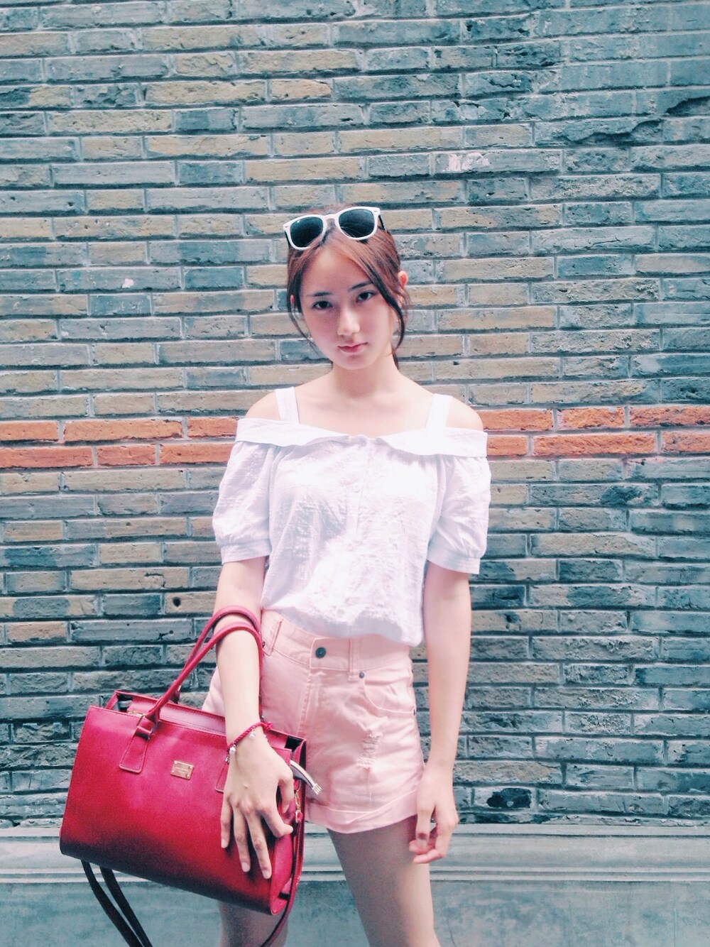 Top: from night market in china蘭州 High waist pants: from H&M last year. Handbag: from Korea In shanghai xitiandi