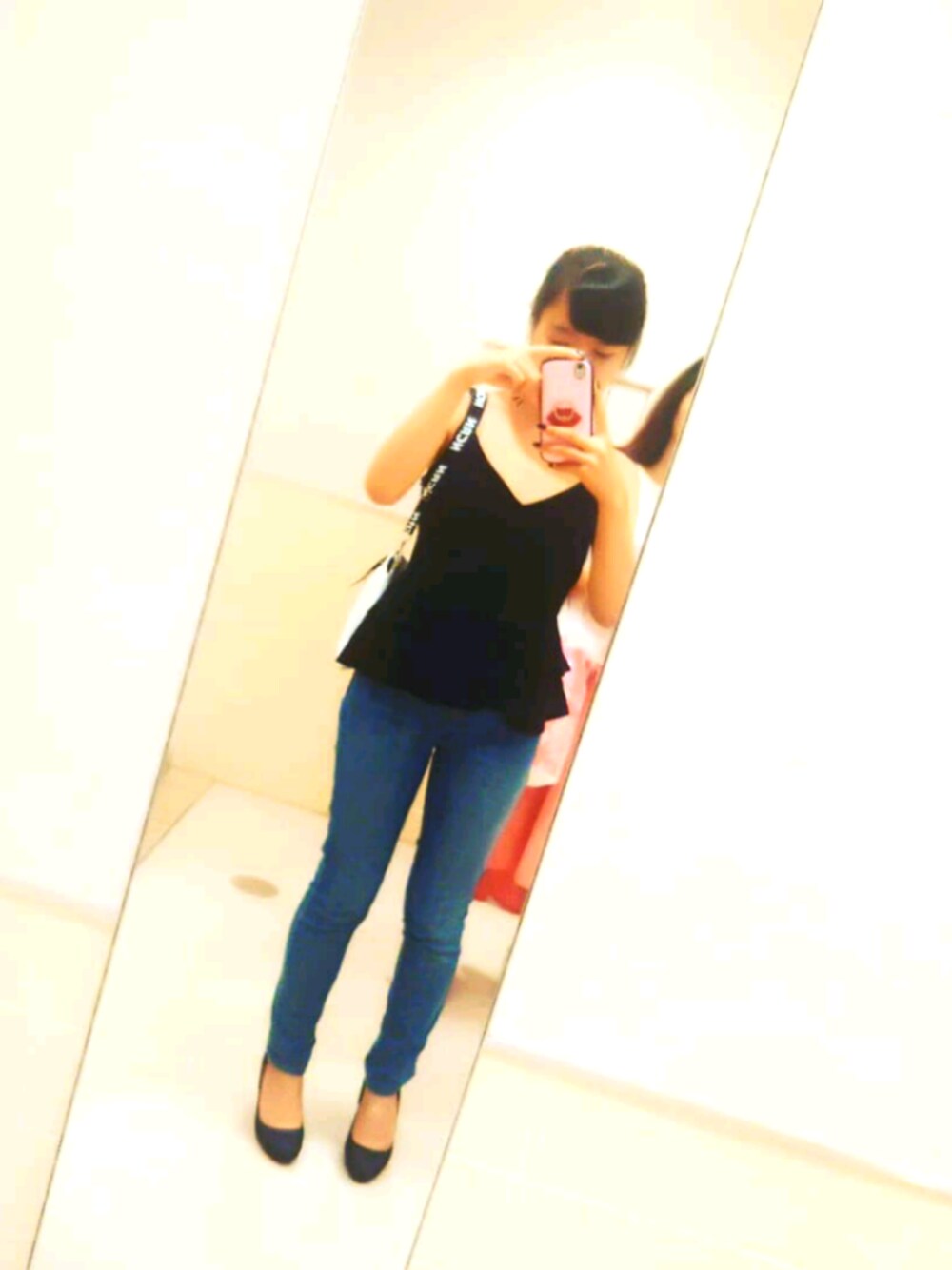 暑かったのでトップスをキャミソールにして下をショーパンツにしてしまうと露出度が高くなってしまうので体が綺麗に見えるジーンズにしました!!大人っぽくするために黒の低めのヒールに!