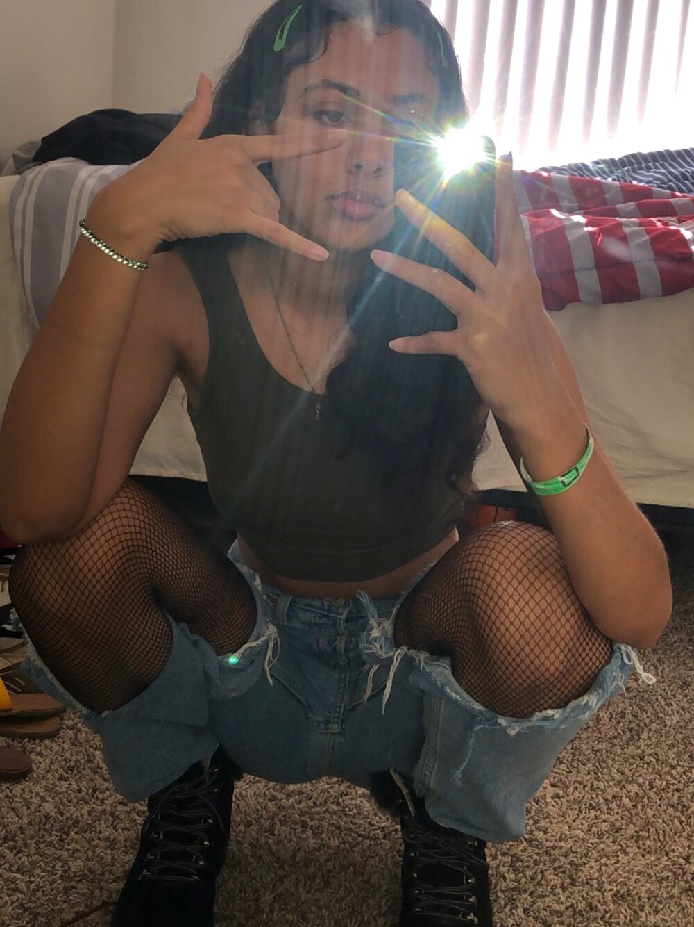 The top is from fashion nova. Shoes are MK. Pants are from forever21 but they did not come like this I made the rips bigger over time on accident still my favorite pair of pants.