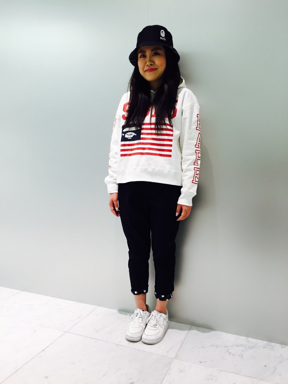 目黒 加代子のパーカー「BAPE SPORT CROPPED PULLOVER HOODIE」を使ったコーディネート