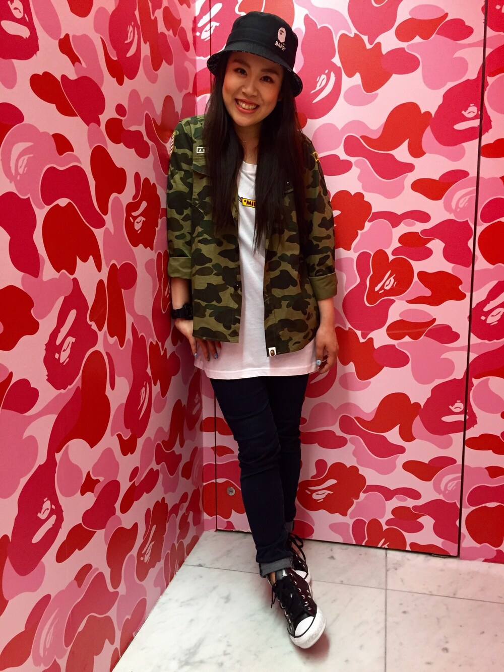 BAPE定番のボーイスカウトシャツは、今の時期のアウターにピッタリです! インナーは白Tを合わせてメリハリを出しました☆