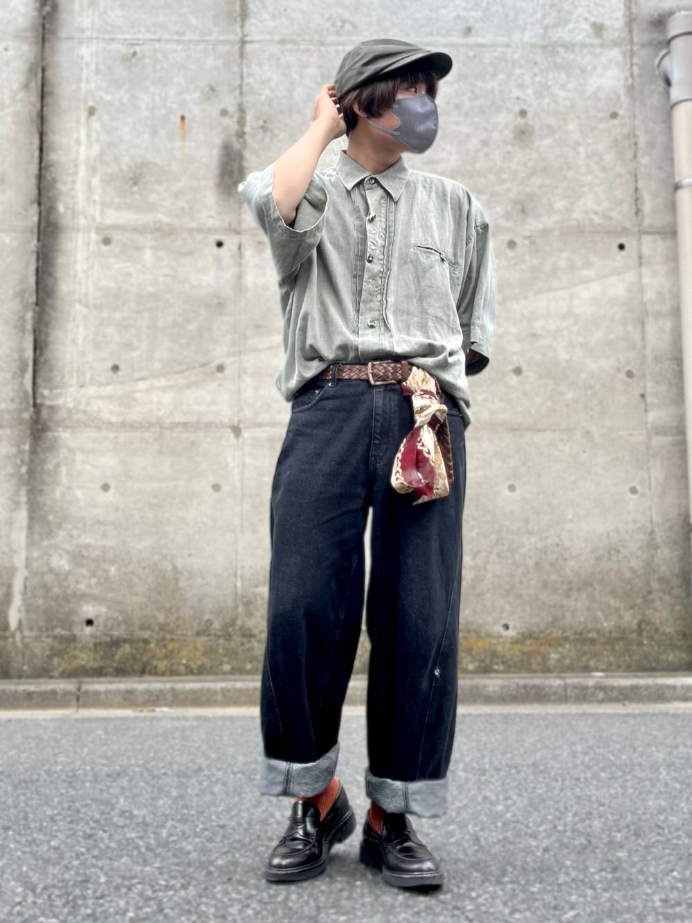 tirolean shirt code! 久々のチロリアンシャツコーデ!☺️ 真ん中のプリーツデザインと、ステッチで描かれた花模様が可愛くて、またくすんだミントグリーンみたいな素敵な色味だったので購入しました✨ クラシックな雰囲気でまとめたかったので、アイテムはローファー、スカーフ、ハンチングキャップで合わせました。 タックインすることでよりフォーマルめな印象に✨ ハンチングキャップはトップスと、スカーフは靴下と色合わせしてるのがポイントです✨
