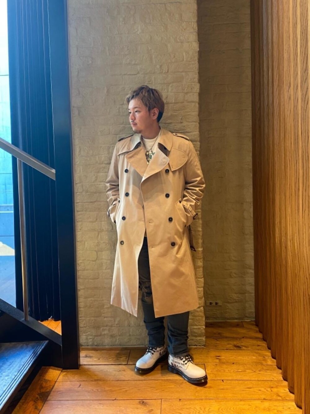 春らしいカラーリングのトレンチコートで纏めたコーディネートになります。 今回はデニムとトレーナーと合わせてよりカジュアルに合わせてみました。デニムの他にもブラックのスキニーやスラックスなどとも相性バッチリです。サイズ感も大きくスーツなどの上からでも合わせられそうなアイテムなので、一つあるとかなり重宝すると思います。