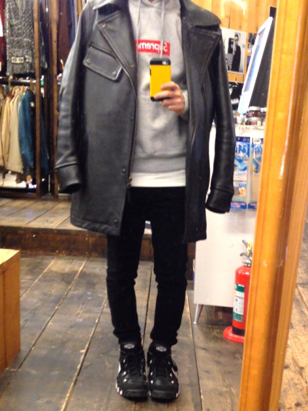お気に入りのCOMME des GARCONSのレザーコート! アウター:COMME des GARCONS インナー:supreme ボトムス:ACNE STUDIOS シューズ:NIKE