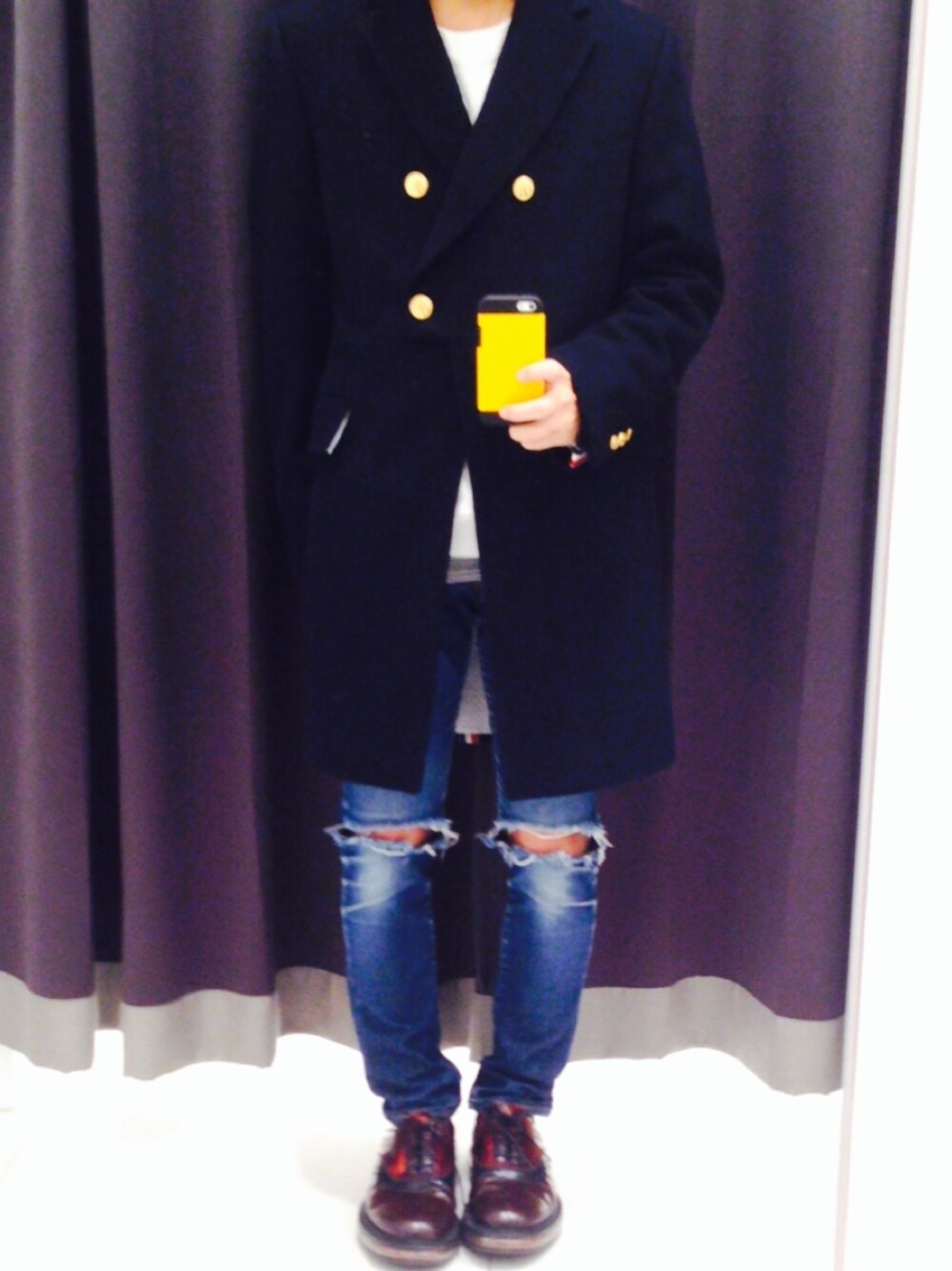 コートと革靴にダメージデニムで んー、ファッションて難しい。。。 アウター:THOM BROWNE インナー:MARTIN MARGIELA,USED ボトムス:UNIQLO シューズ:PRADA