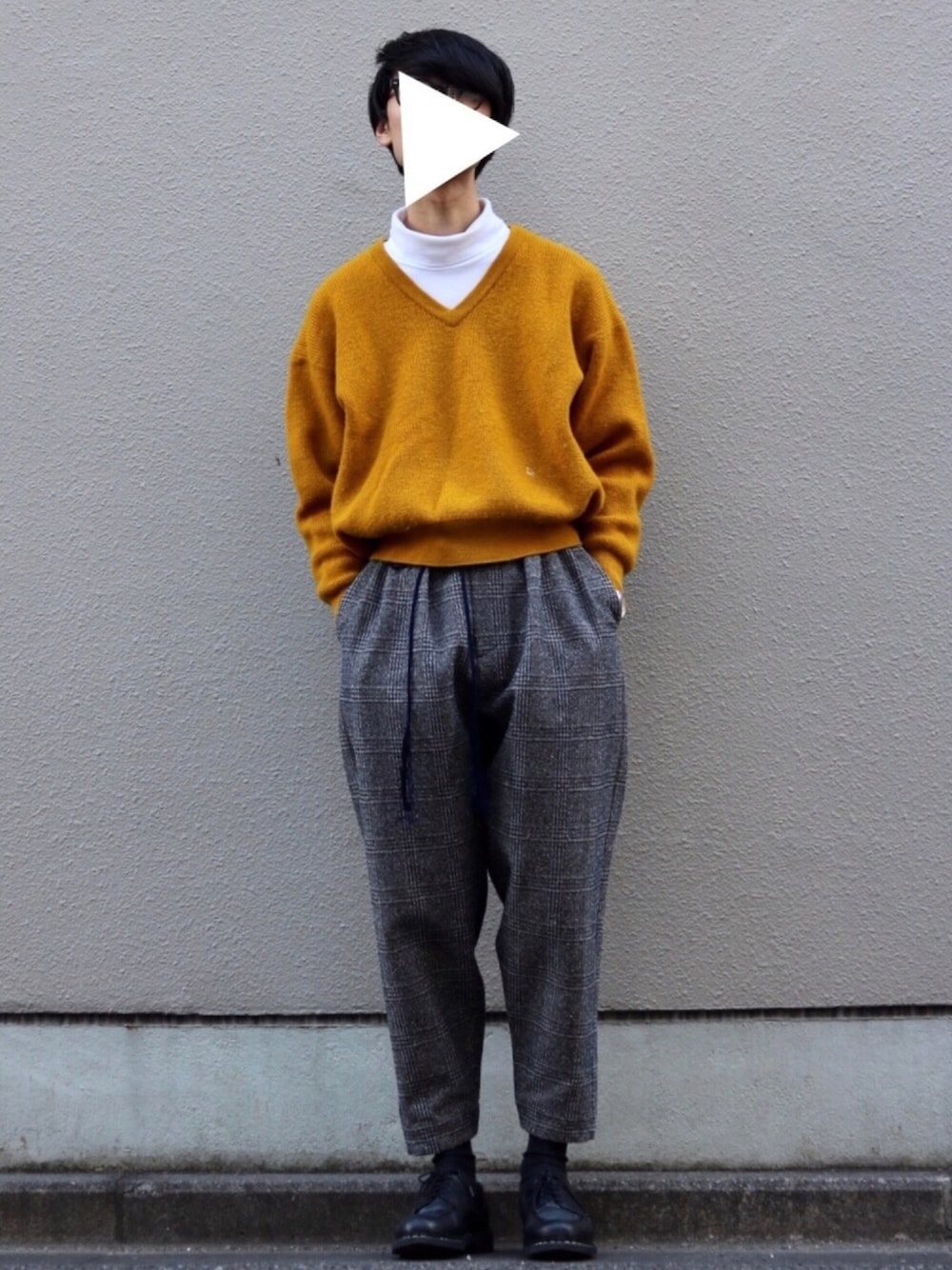 【instagram】@kaz0608fashion 【 Twitter 】@kaz0608fashion 【 size list 】 ボトムス XS 父から受け継いだニット☺️ ざっくり空いたVネック結構合わせるの難しくて苦戦してる😭笑 けど、大切に着たいニット。 そして、乗り遅れた感半端ないけどグレンチェック←