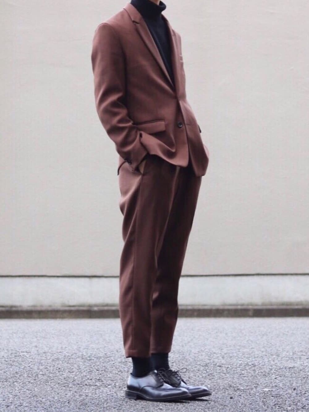Kazuのテーラードジャケット「【セットアップ対応】RETORO POLYESTER TWILL / 2B セミ ピークドラペル シングル ジャケット」を使ったコーディネート