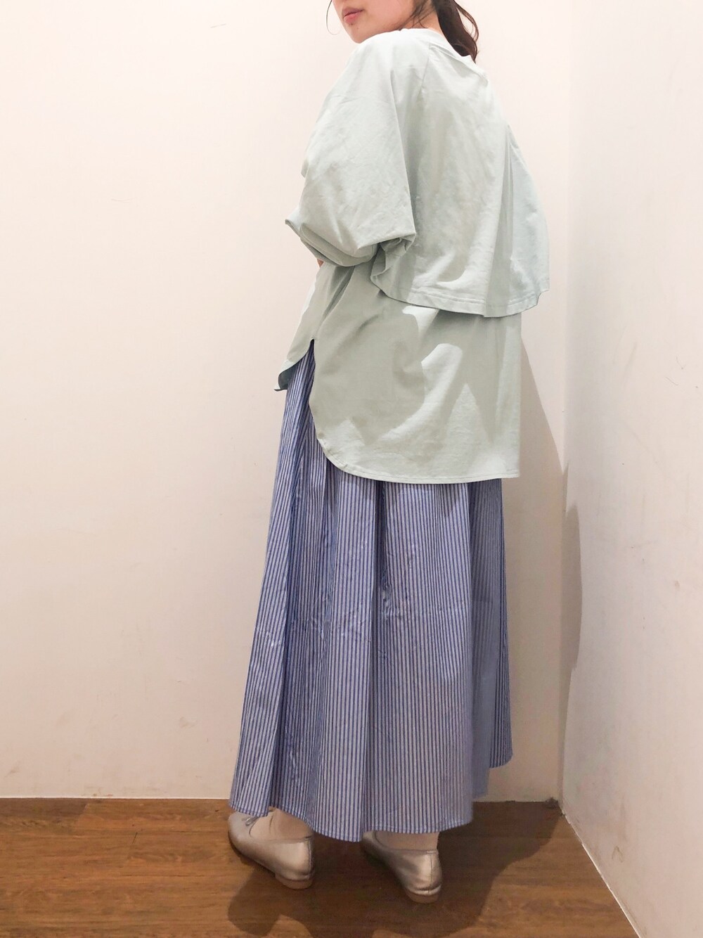 ひとつ前のTシャツの色違い。ミントとブルーのストライプで爽やか🐠