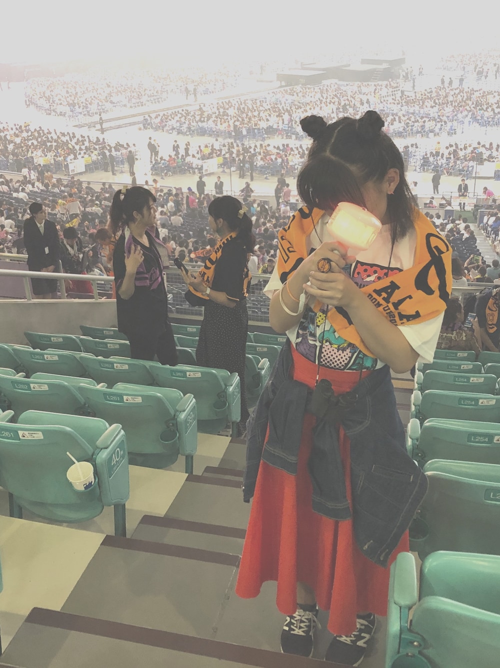 2018.09.16 AAA COLOR A LIVE の参戦服です!!笑 1日目とは真逆な感じで可愛くしました☺︎︎ お気に入りは、濃いオレンジが綺麗なスカートです! 推しがオレンジカラーの方にはおすすめです👍 アクセントとして、デニム生地のジャケットとニューバランスの靴を履いて、動きやすい感じになってます😆