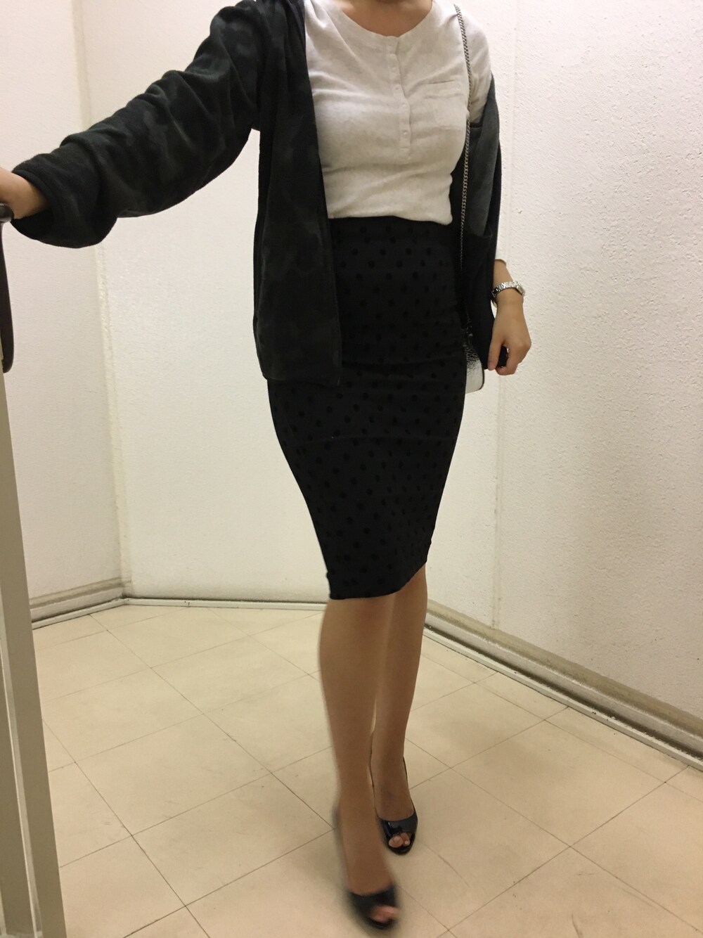 ご覧いただきありがとうございます😊 緑の迷彩柄のフリースと、黒のドット柄の タイトスカート、見分けがつきませんね😢 ライトの勉強もしたいと思います😂