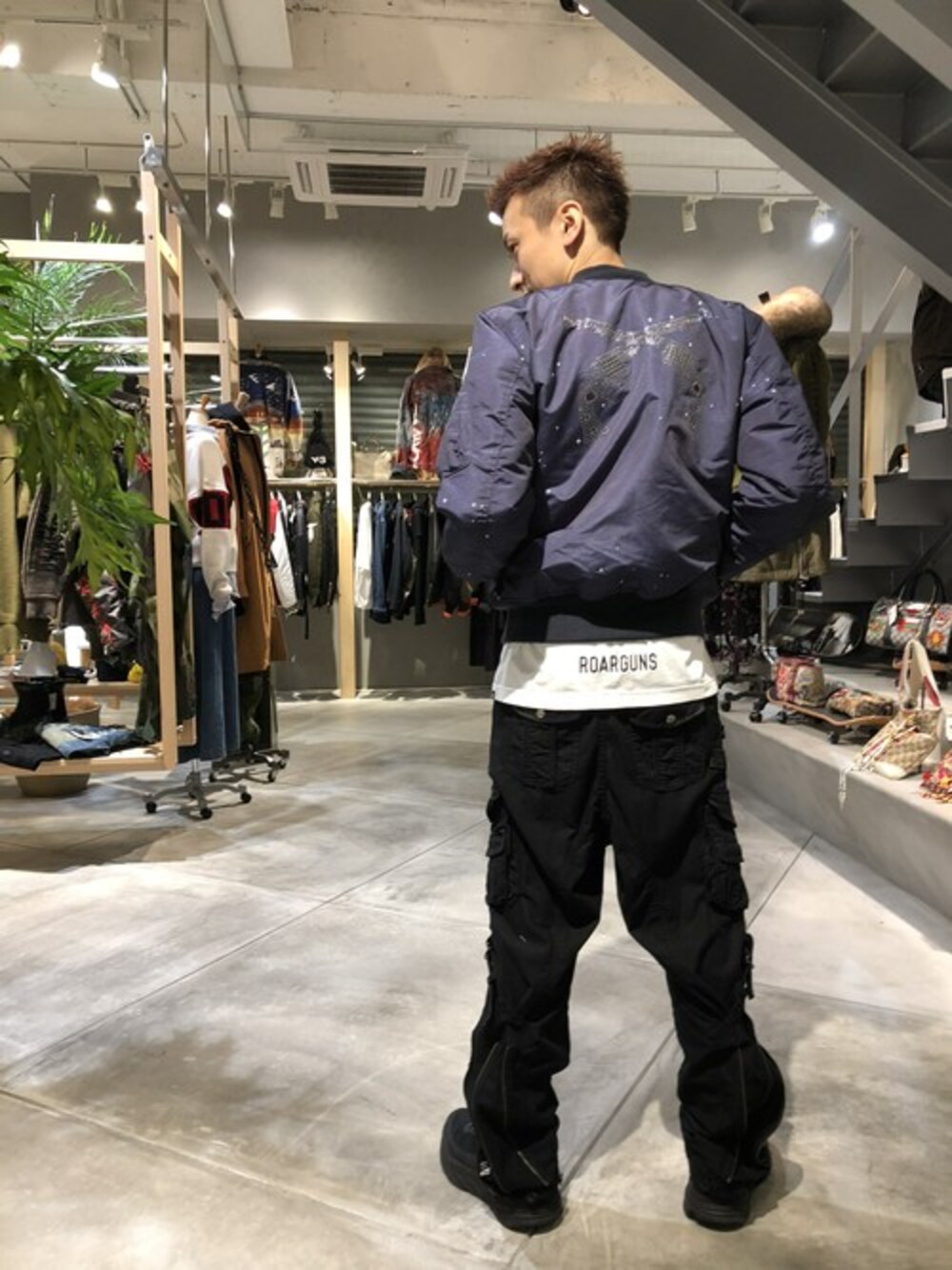 ROYAL FLASH別注『roarguns×AVIREX』MA-1。 太めカーゴパンツに合わせるのがオススメ!