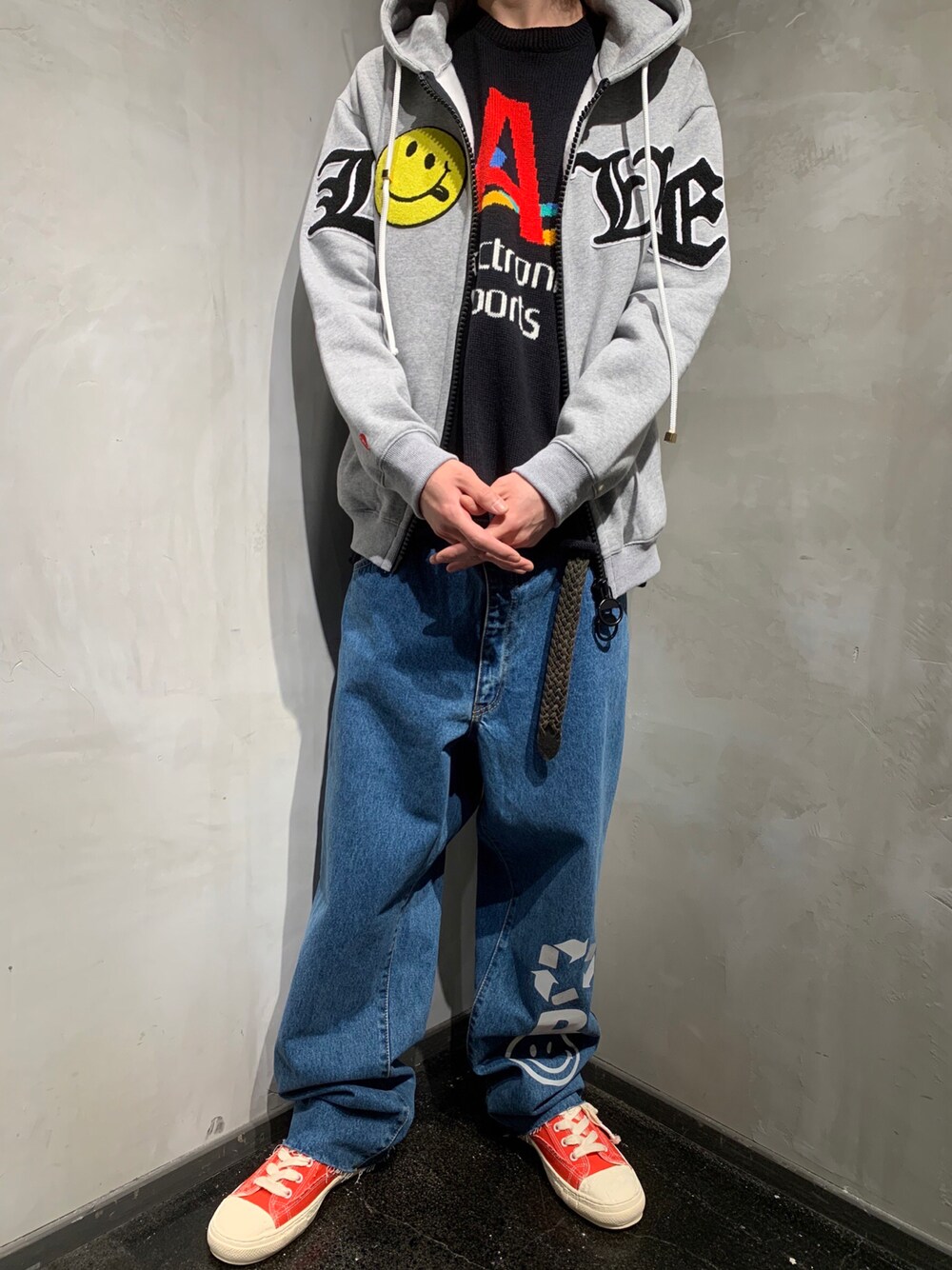 izakazu(ROYAL FLASH GINZA SIX店)のニット/セーター「【別注】amok /アモク/ELECTRONIC SPORTS KNIT」を使ったコーディネート