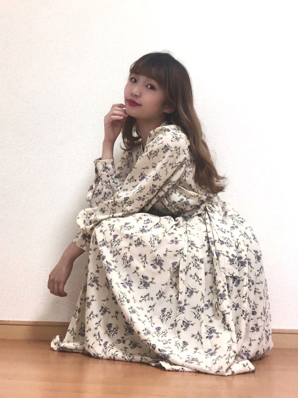 1枚で可愛い小花柄のトレンドワンピース👗👗👗 久々の投稿で朝から張り切っております✨✨🙌🙌 髪の毛はゆるゆるの巻き下ろしヘアがおすめです🙌☺️