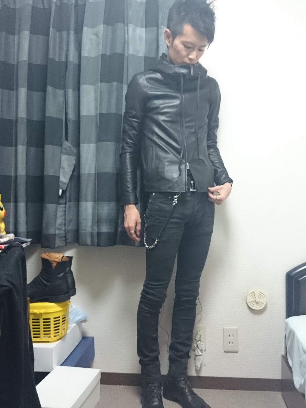 やっはろー! とりあえずレザーパーカーコーデを。 パンツはカモフラ柄なんだけどわからんよなー