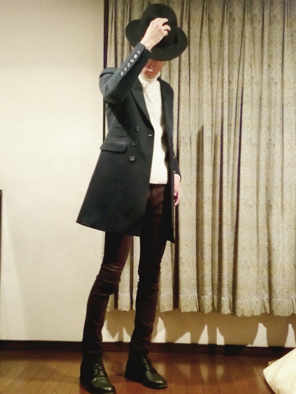 やっはろー! タートルネックとチェスターコートでかなり際立った感じにしました