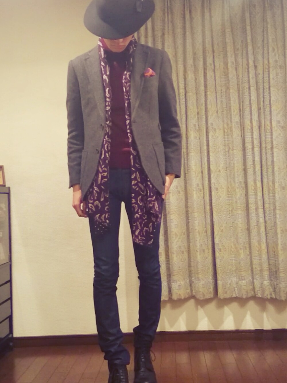 やっはろー! ツイードジャケットにタートルネック合わせました!